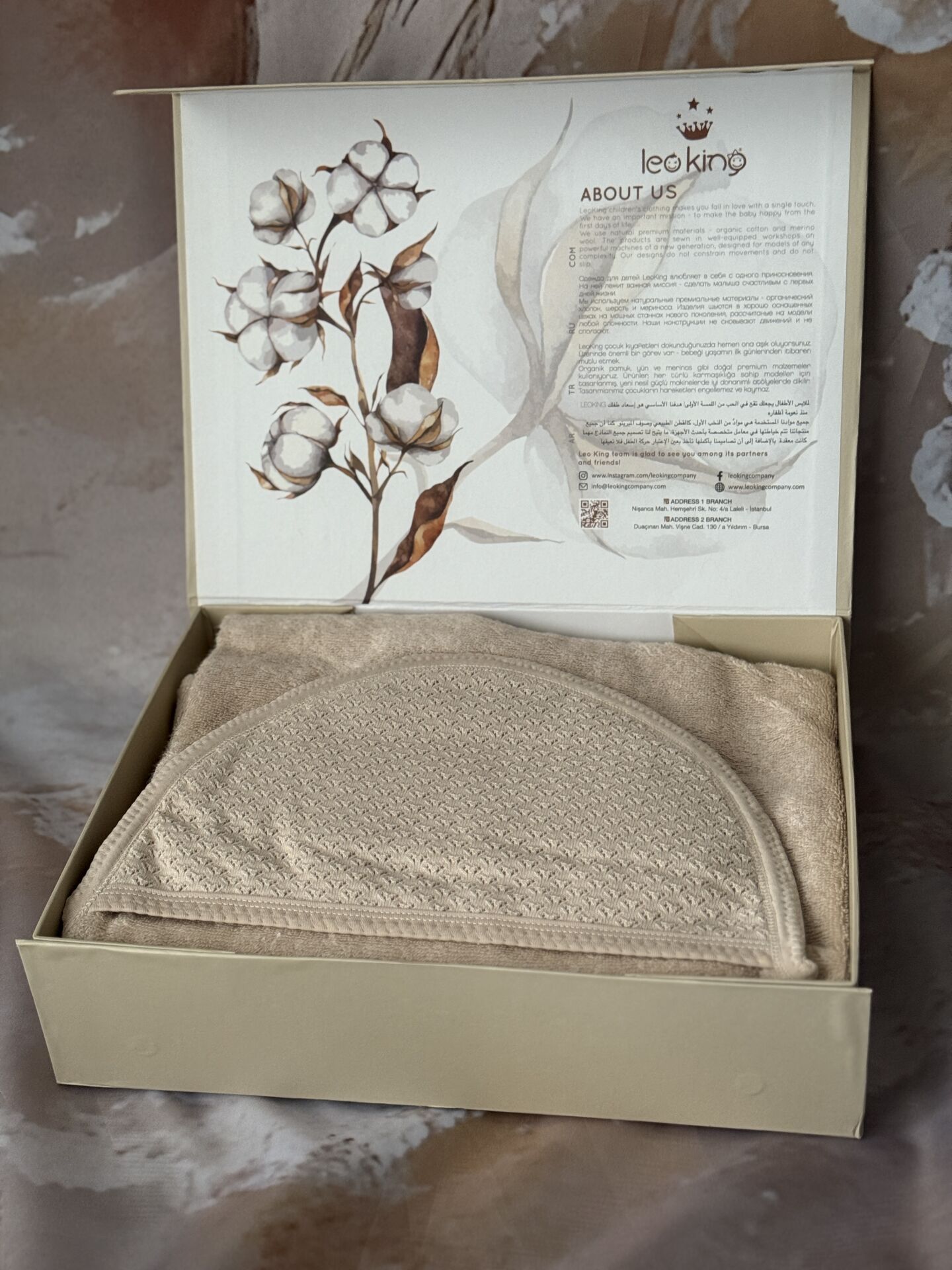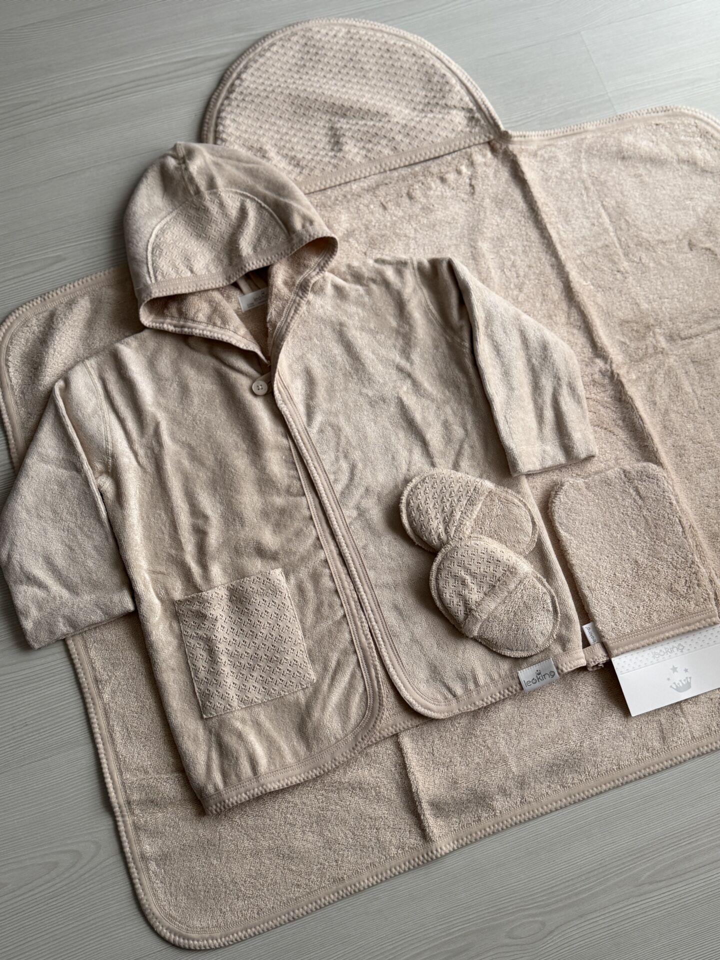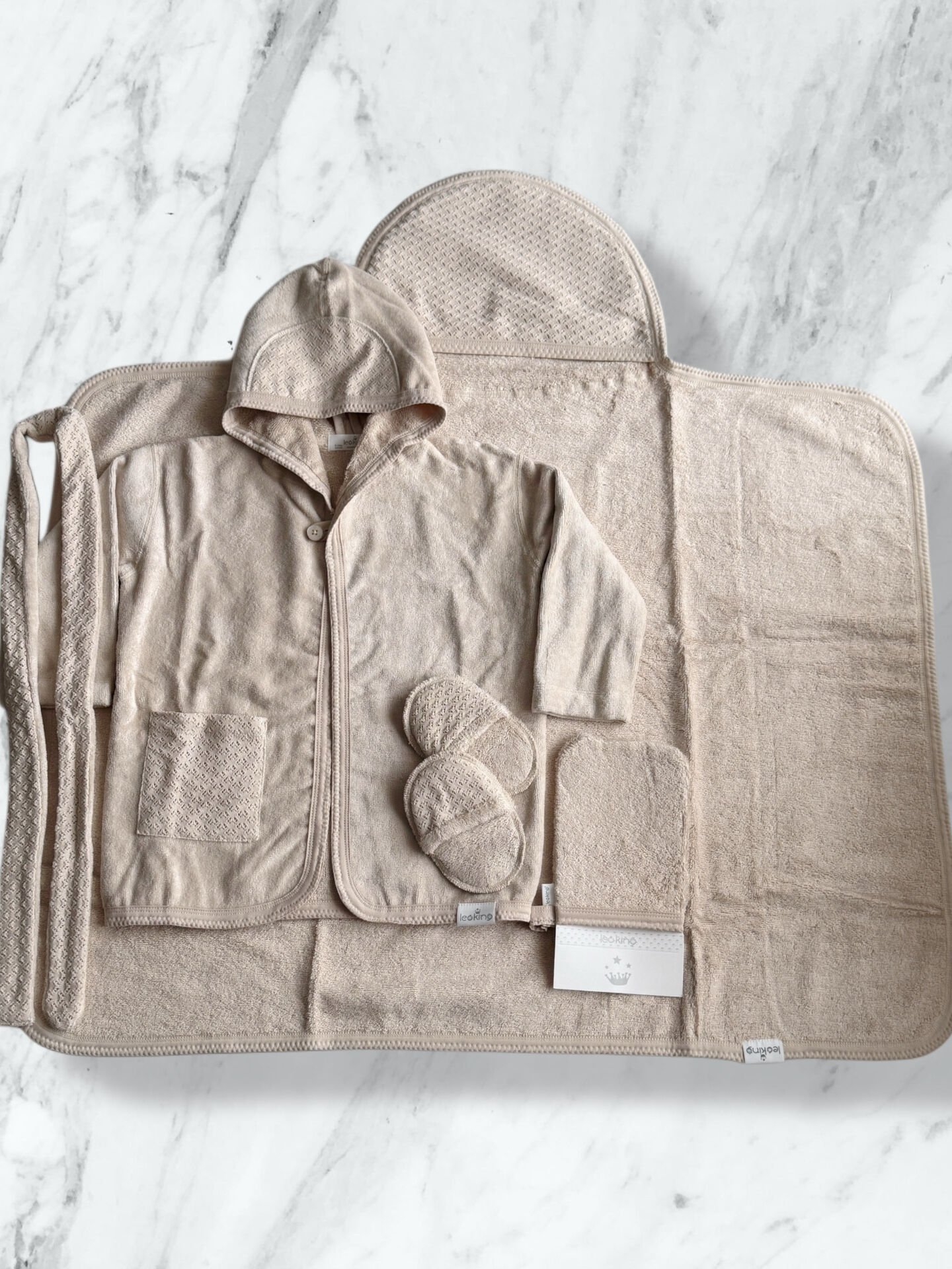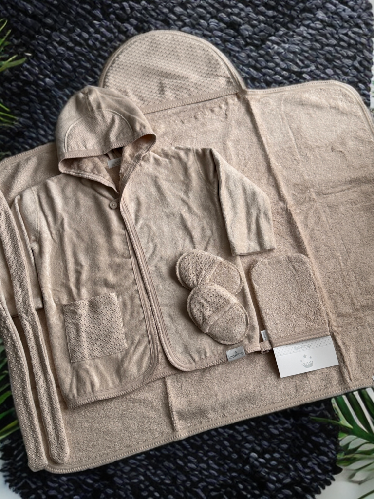 0–24 Ay Bebek Bornoz Seti | Kutulu Premium 4’lü Banyo Seti (Bornoz, Havlu, Terlik, Kese) Bebeğinizin hassas cildi için özenle tasarlanan Premium Bebek Bornoz Takımı, banyo sonrası maksimum konfor ve sıcaklık sağlar. Doğal, nefes alabilen ve yüksek emiciliğe sahip kumaşı sayesinde bebeğiniz banyodan sonra hızla kurulanır, üşümez ve rahat eder. Set içerisinde yer alan tüm parçalar 0–24 ay arası bebekler için uygundur ve uzun süreli kullanım düşünülerek hazırlanmıştır. Şık ve sade tasarıma sahip özel kutulu ambalajı, bu seti doğum hediyesi, hastane çıkışı veya özel günler için ideal hale getirir. Minimal ve zamansız renk seçenekleri sayesinde hem kız hem erkek bebekler için rahatlıkla tercih edilebilir. GSAA5DML3L