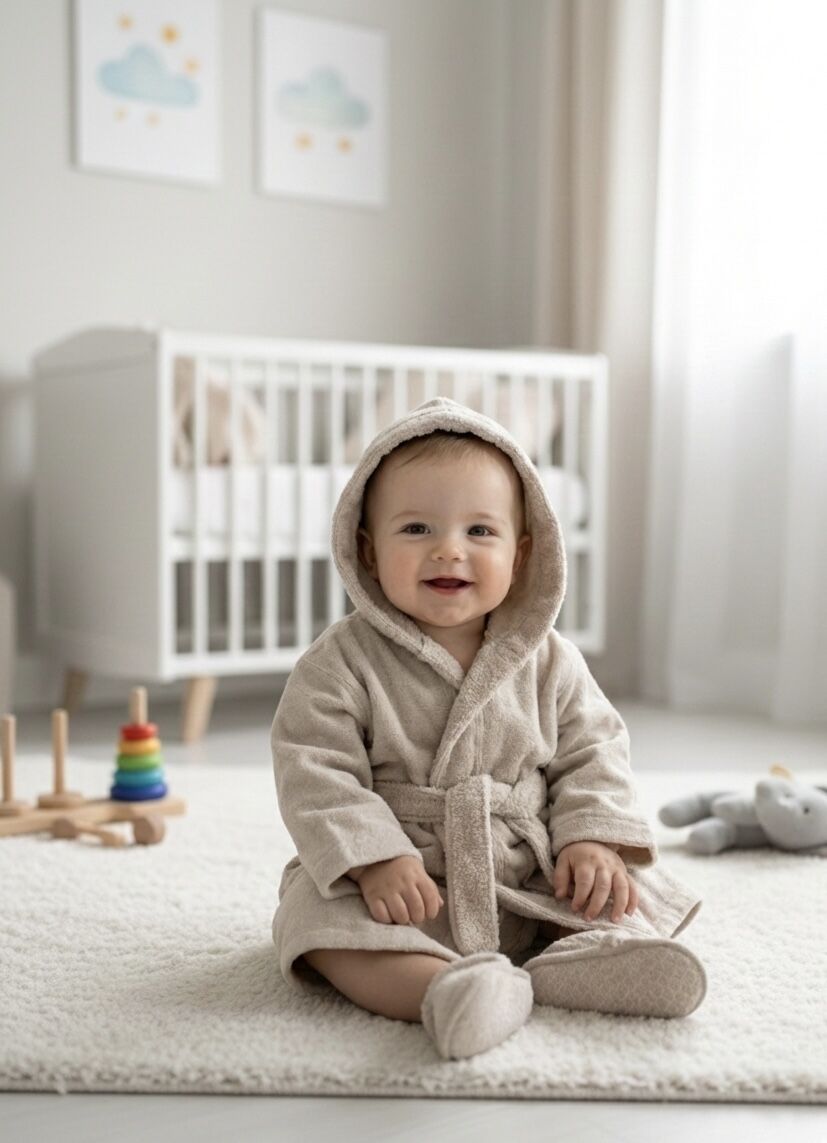 Bebeğinizin hassas cildi için özenle tasarlanan Premium Bebek Bornoz Takımı, banyo sonrası maksimum konfor ve sıcaklık sağlar.