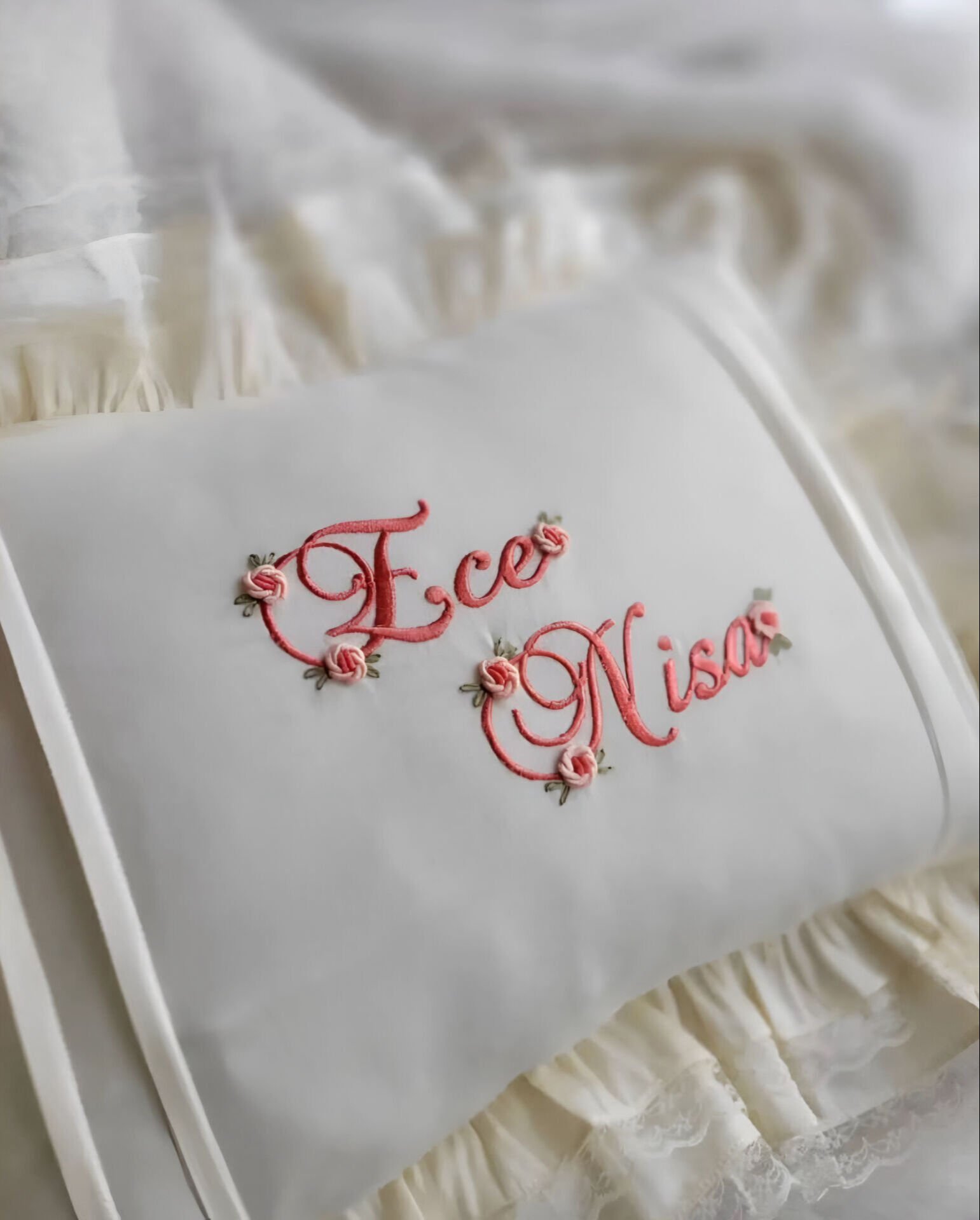• Eğer setinize yastık eklediyseniz, fırfırlı veya biyeli model tercihinizi ve üzerine işlenecek bebek ismini sipariş notunuzda belirtmeyi unutmayın.