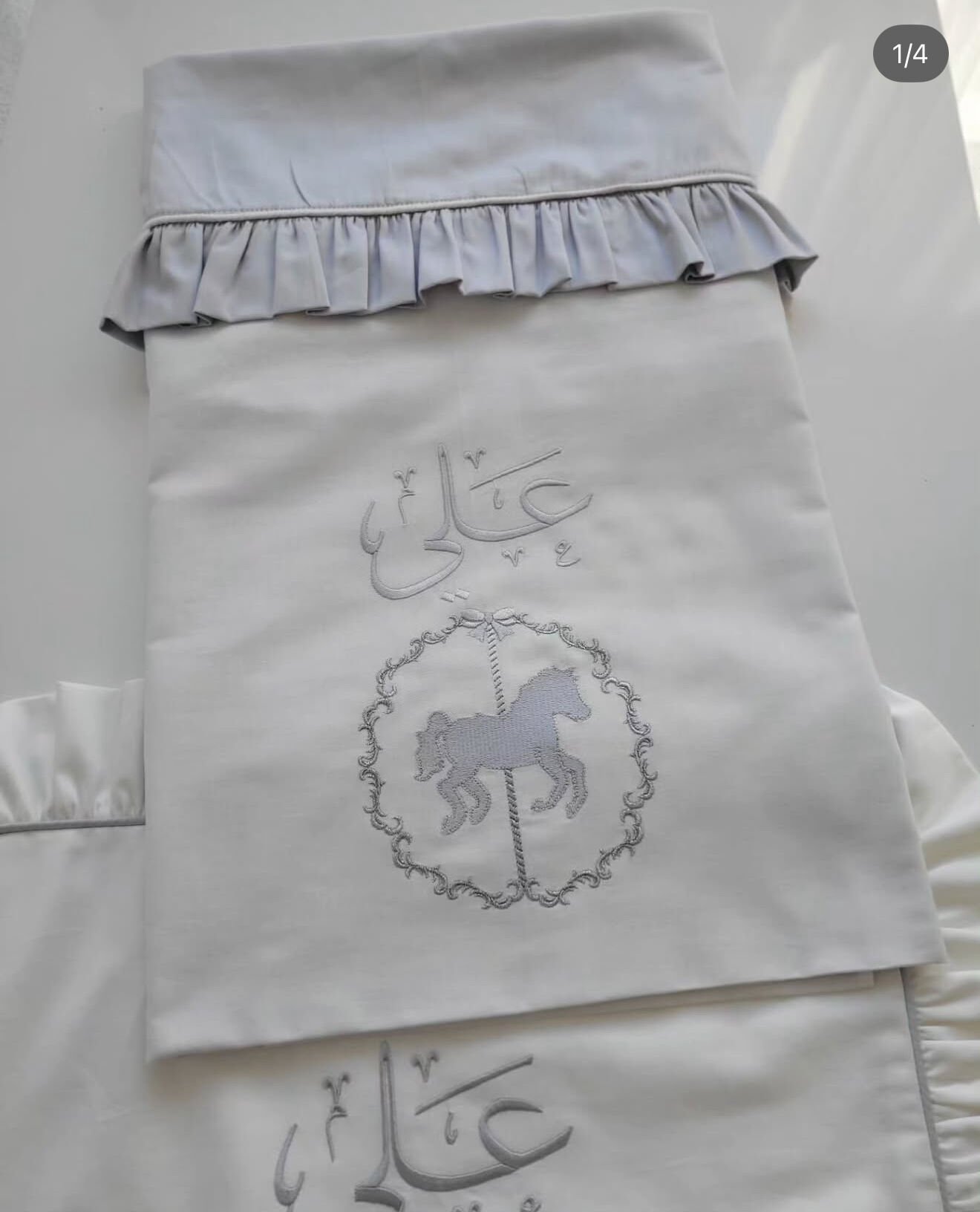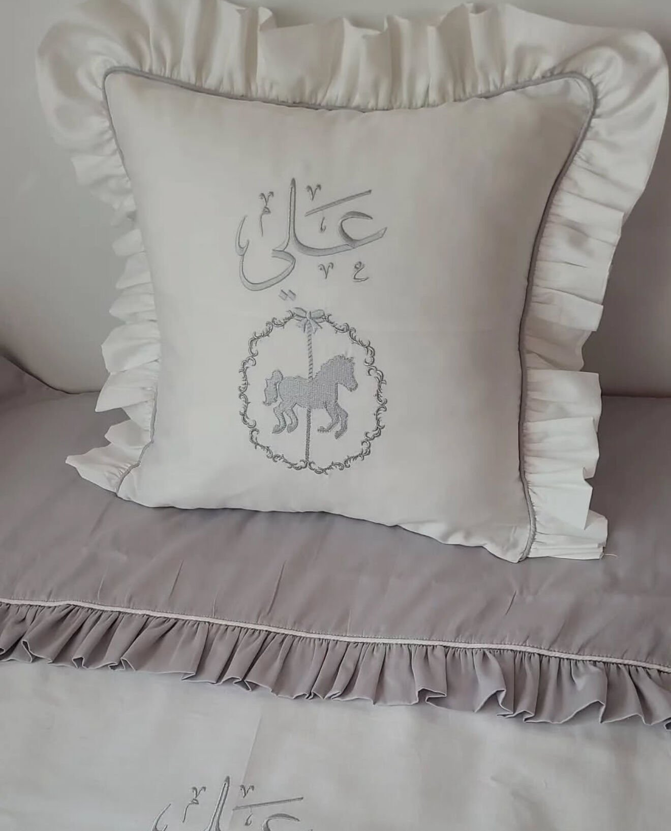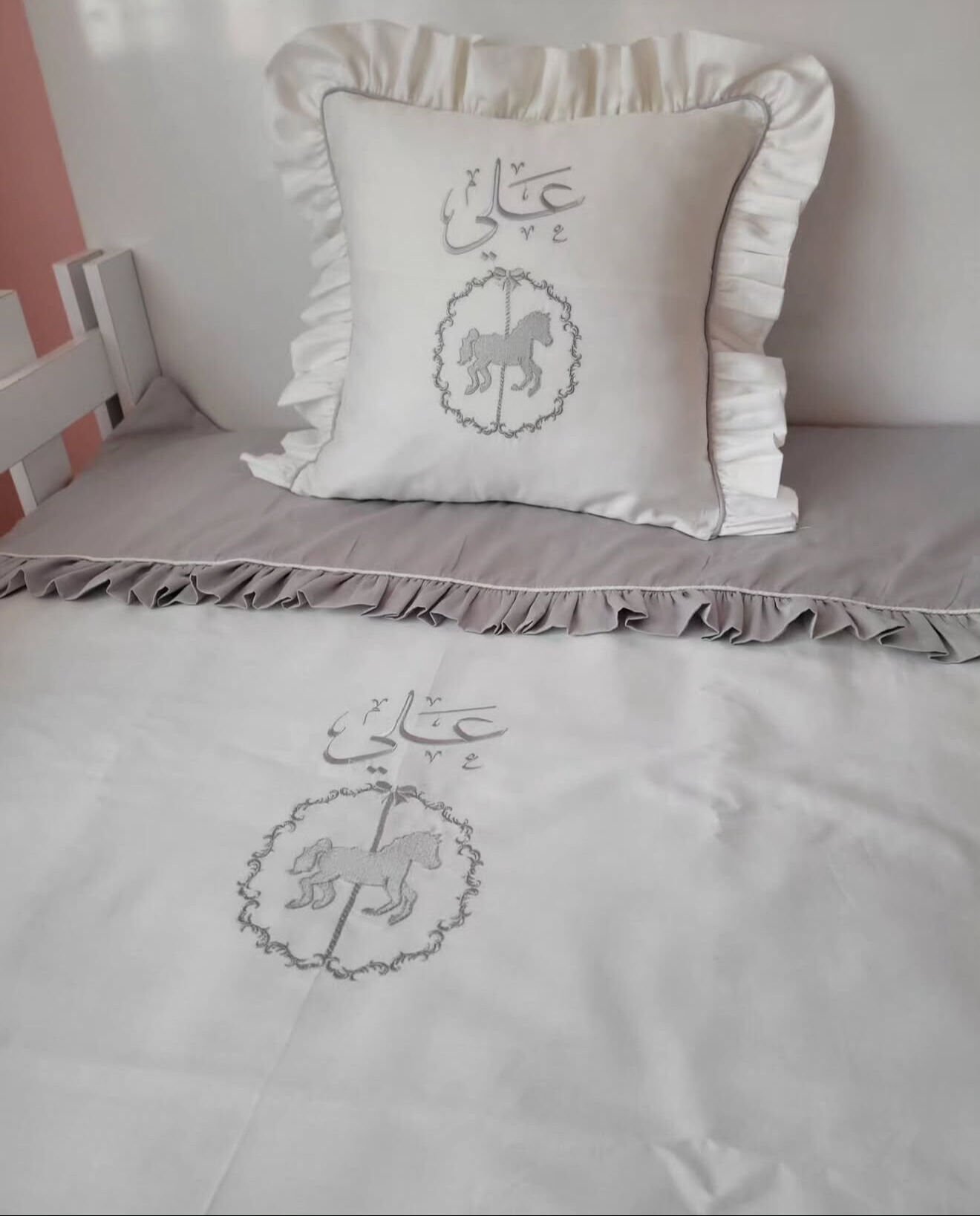 İsimli Asil At Nakışlı Bebek Nevresim Takımı - Lüks İşleme %100 Pamuk