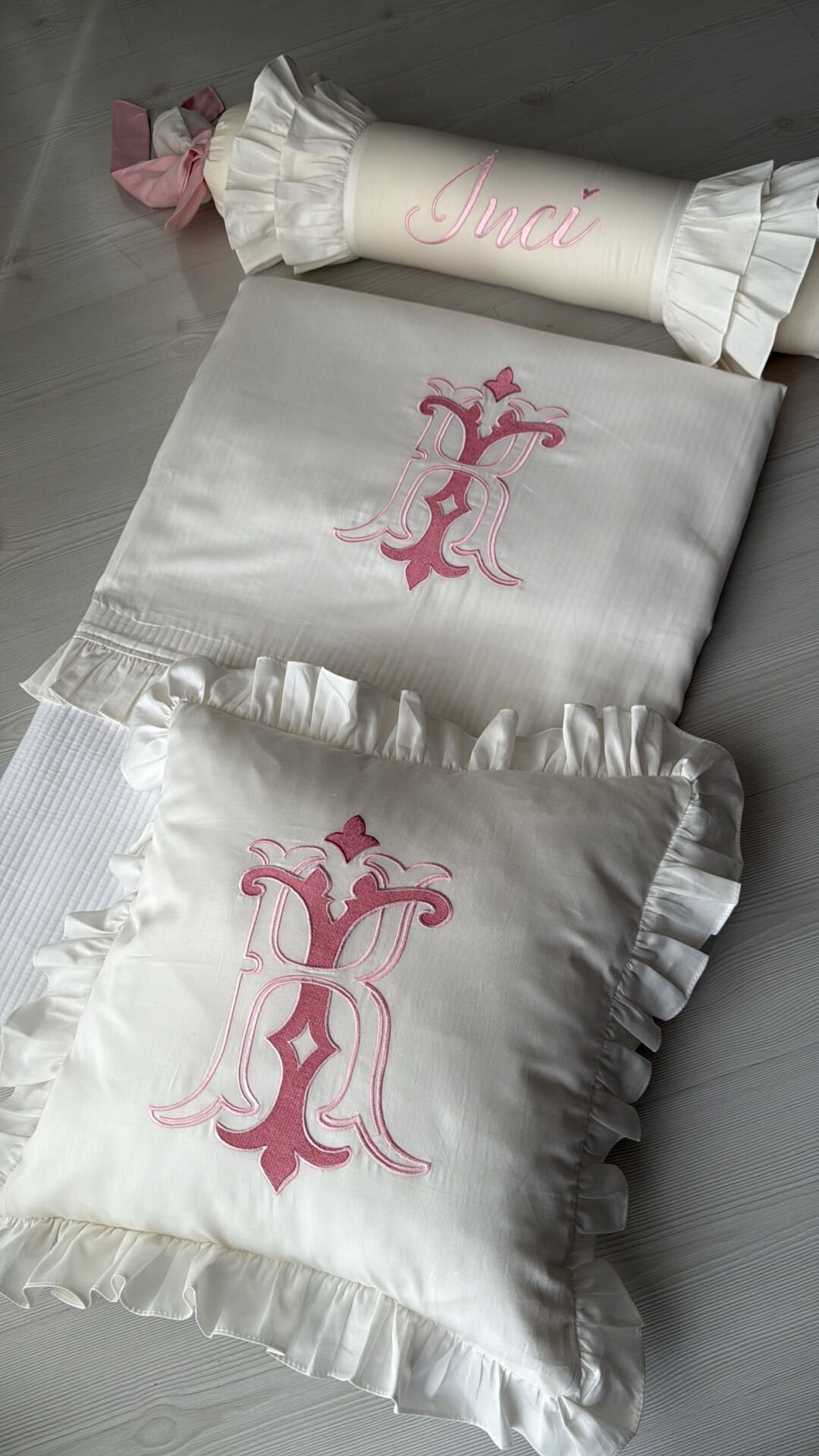 Bebeğinizin konforu ve sağlığı için özenle hazırlanan bu özel nevresim takımı, el işçiliğiyle yapılmış makine nakışı detaylarıyla zarafeti bir araya getirir. Her parça, yumuşacık pamuk saten kumaşıyla dört mevsim kullanıma uygundur.