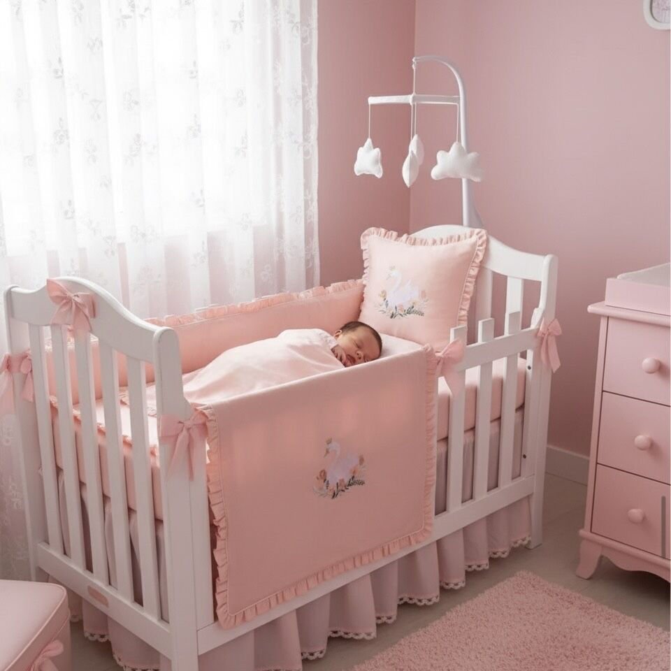 Bebeğinizin konforu ve sağlığı için özenle hazırlanan bu özel nevresim takımı, el işçiliğiyle yapılmış makine nakışı detaylarıyla zarafeti bir araya getirir. Her parça, yumuşacık pamuk saten kumaşıyla dört mevsim kullanıma uygundur.