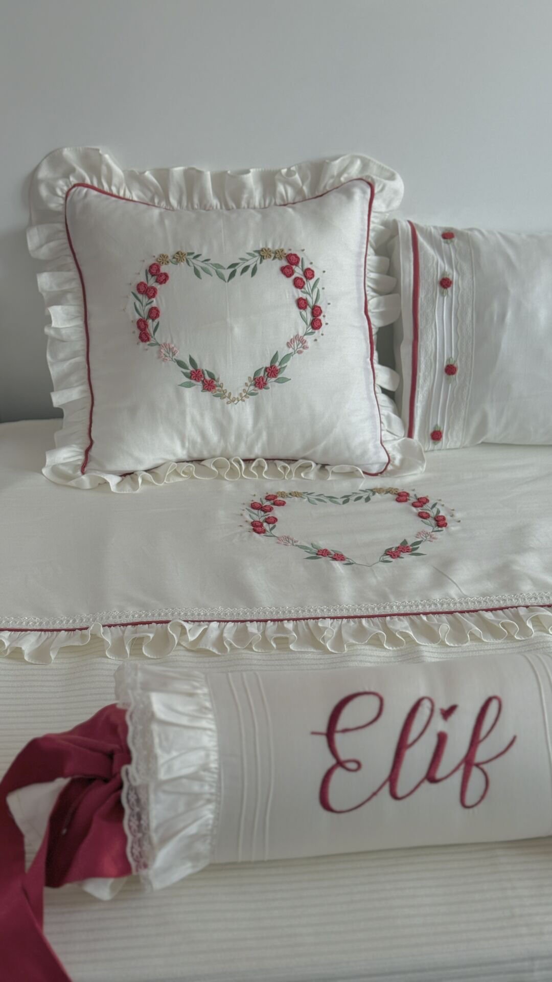 - Yastık Kılıfı: 35x45 cm — Sade ve zarif nakış detayları