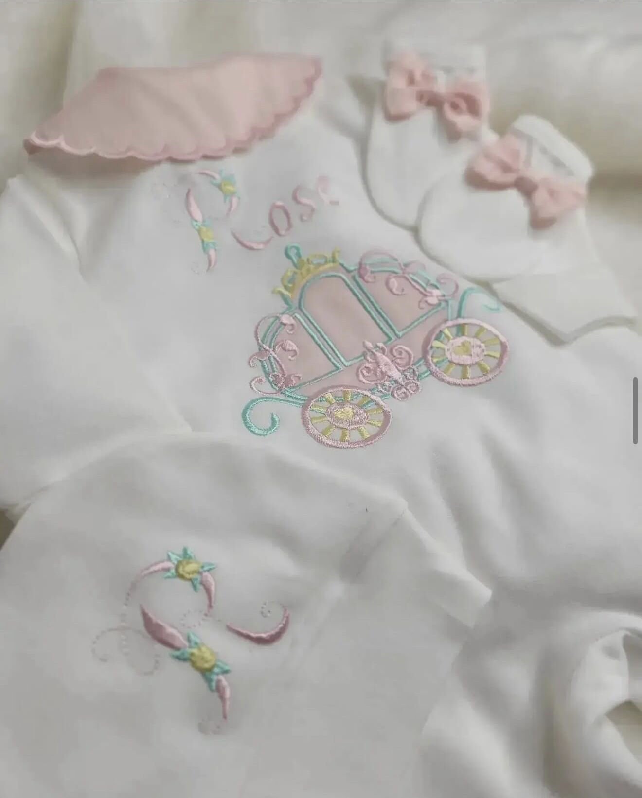İsimli Prenses Tacı Nakışlı Kız Bebek Hastane Çıkış Seti - Kişiye Özel %100 Pamuk