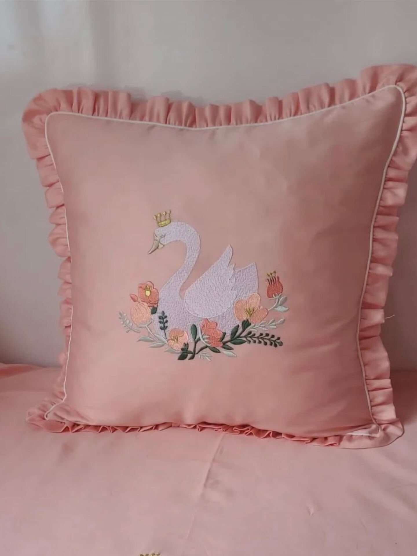 Somon Kuğulu Pamuk Saten Kumaştan Takı Yastığı